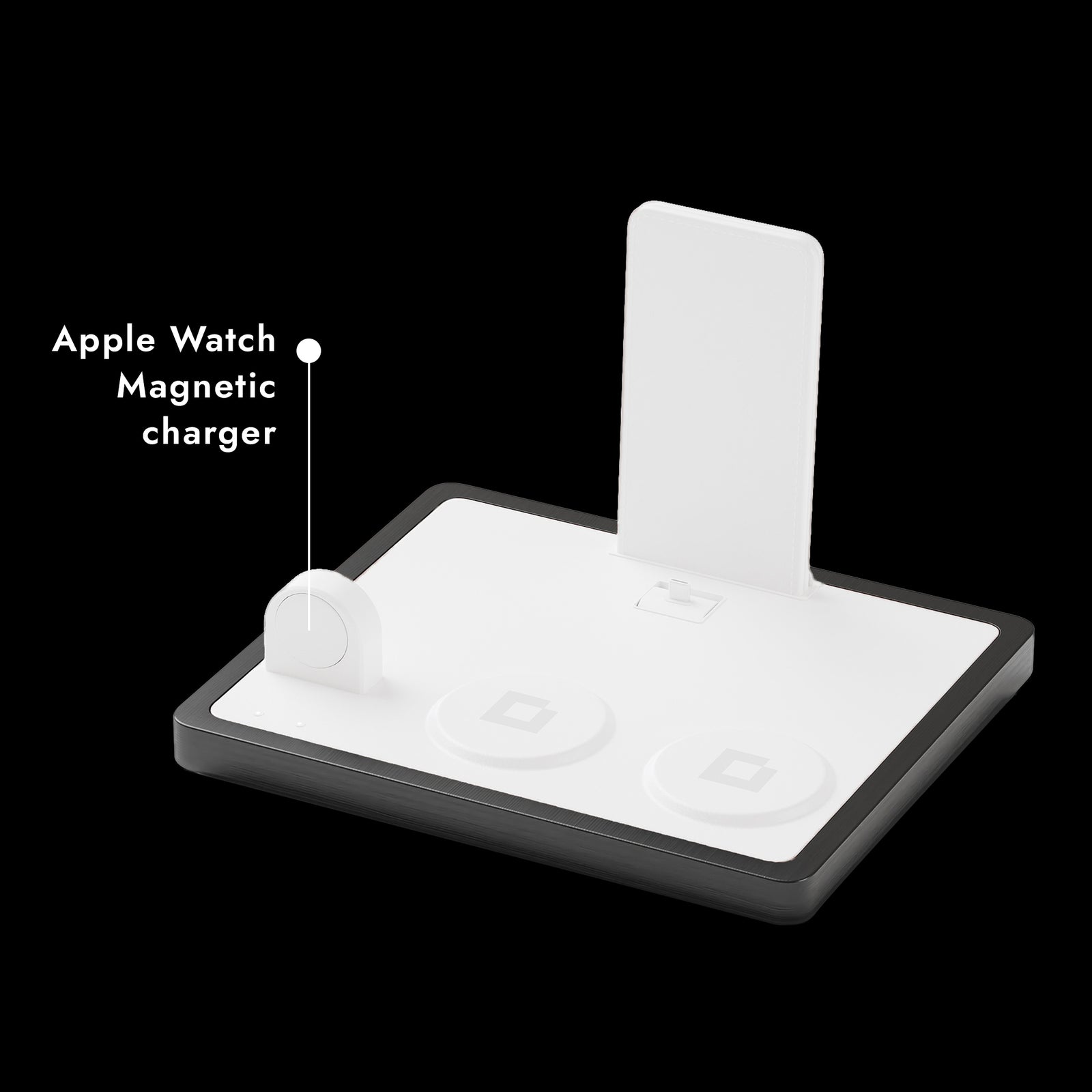 Our Apple Charging Station features an Exceptional Apple Watch Magnetic Charger, offering secure and reliable charging for your Apple Watch. With its precise alignment and efficient power transfer, you can trust that your Apple Watch will be fully charged and ready for action whenever you need it. Say goodbye to the hassle of tangled cords and welcome the convenience of our magnetic charger, designed to complement your Apple Watch's sleek design.