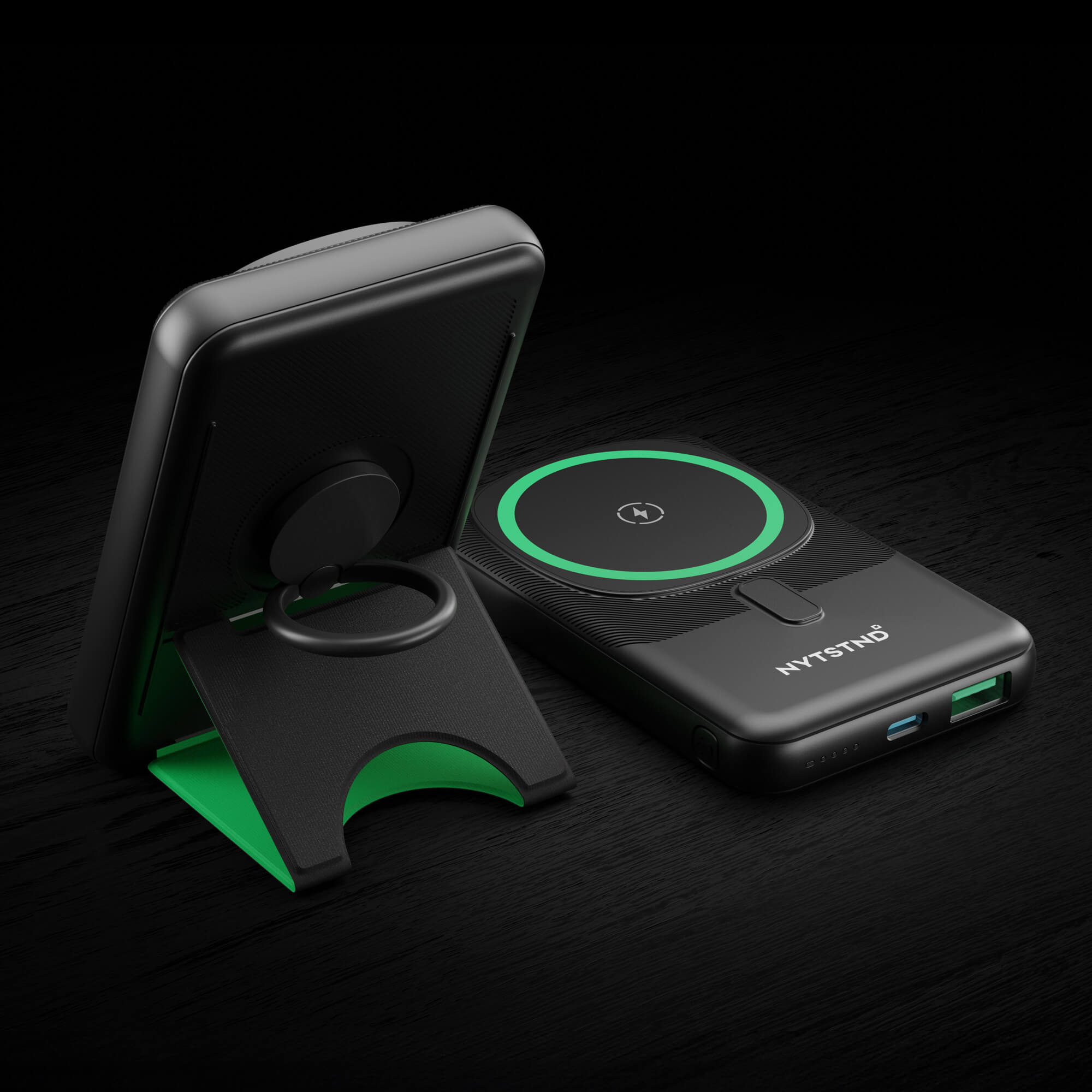 Equipped with a robust 20W Power Delivery system, this power bank provides high-speed charging to your devices powered up in no time. The magnetic attachment feature ensures a secure and effortless connection with your device, enhancing convenience without sacrificing style. Its slim, portable design with an adjustable kickstand makes it the perfect power companion for on-the-go use, gaming sessions, or an efficient desk setup.